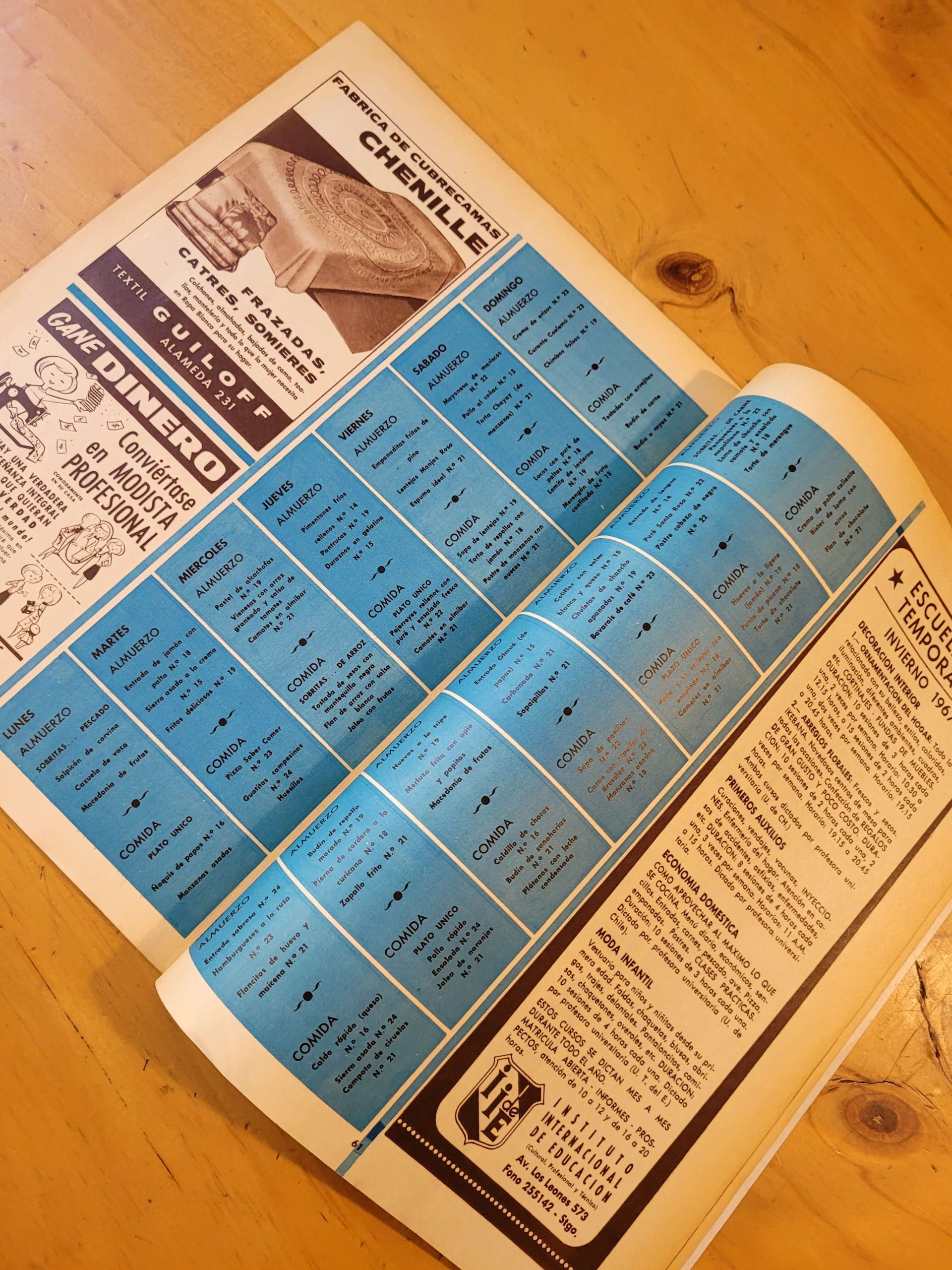 En otro se encuentran artículos como: El misterio del cocaví, las provincias de Chile y sus platos típicos, arreglos florales, menú de bajas calorías, cómo evitar lavar ollas y sartenes, plantas para su cocina, alimentos vedados, diccionario internacional de guisos y mucho, muchísimo más.