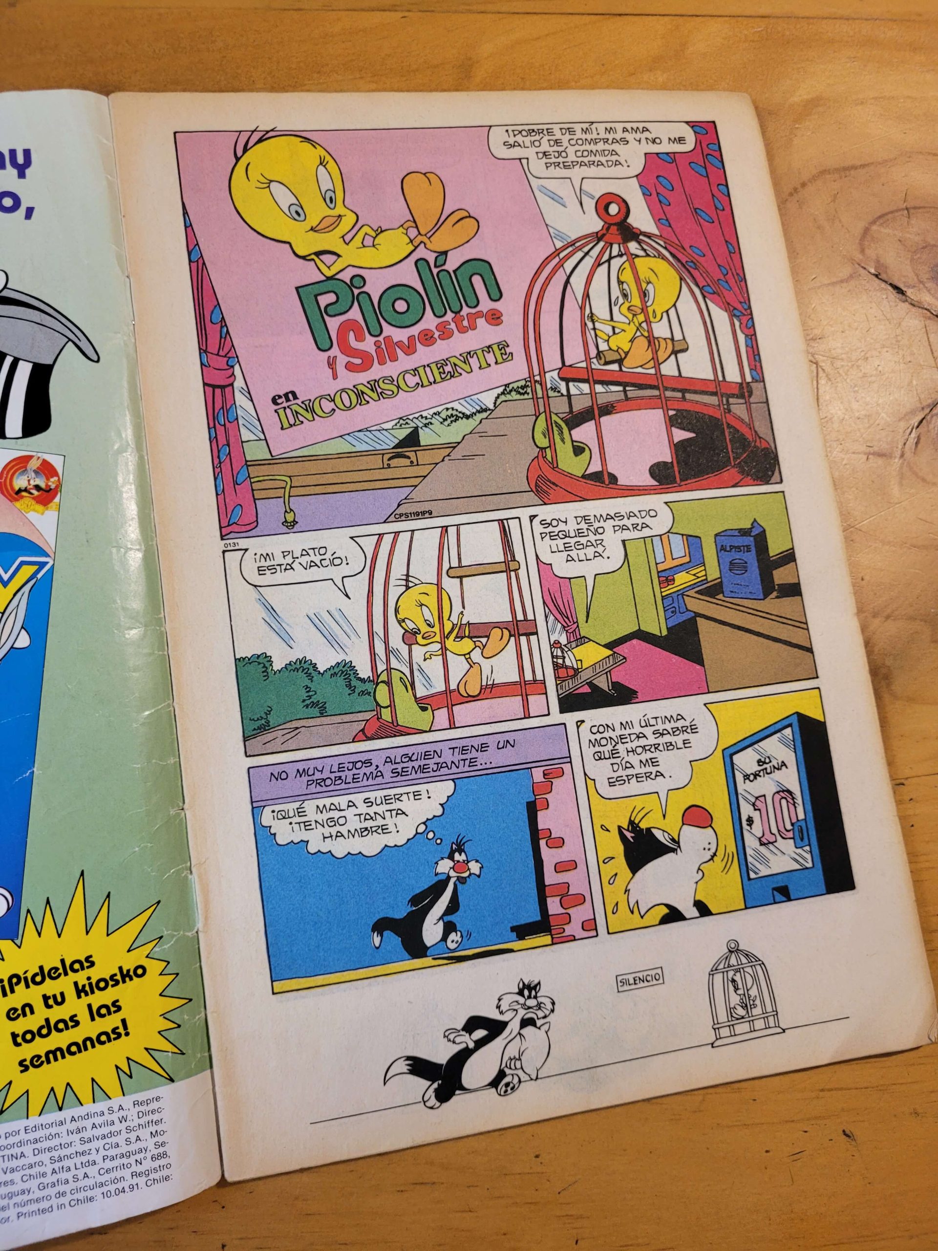 Durante los años 1990 y 1991, los cómics de Piolín, Silvestre y Porky vivieron una etapa de transición clave bajo la publicación de Welsh Publishing Group y los primeros pasos de DC Comics con la licencia de Warner Bros. El título principal de este bienio fue Looney Tunes Magazine, una revista que combinaba historietas cortas con actividades para niños. En estas páginas, Piolín y Silvestre protagonizaron historias que mantenían la estética clásica de los cortometrajes originales, enfocadas en las ingeniosas trampas del gato y las irónicas escapatorias del canario, mientras que Porky aparecía frecuentemente como el contrapunto sensato o víctima de las travesuras de otros personajes en relatos de humor situacional.