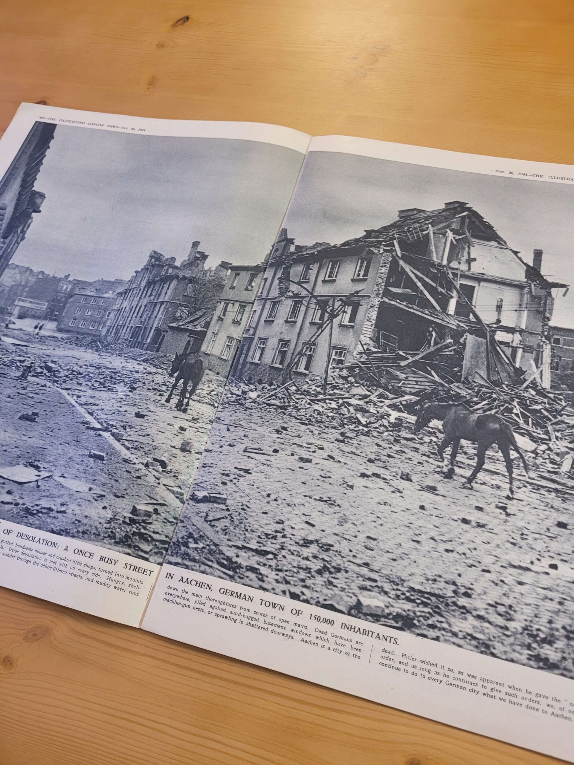 Fotografías y reportajes de guerra en la más alta calidad. No es posible acceder de mejor manera a los pormenores de la segunda guerra mundial que a través de una de las Illustrated London News, pues ésta nos ofrece la oportunidad de experimentar el conflicto en el momento en que sucedía, y bajo los ojos atemorizados de la población inglesa, sometida a bombardeos alemanes y en busca de animar a la ciudadanía a la resistencia y el contraataque.