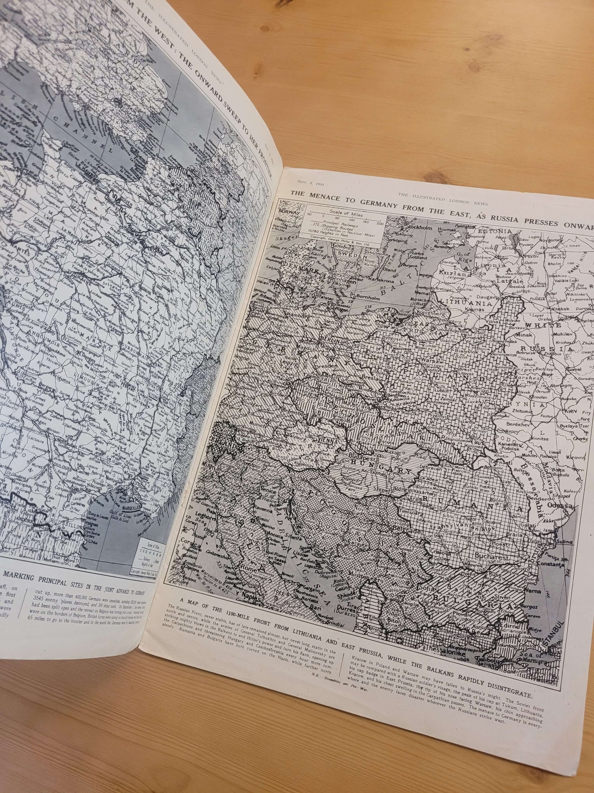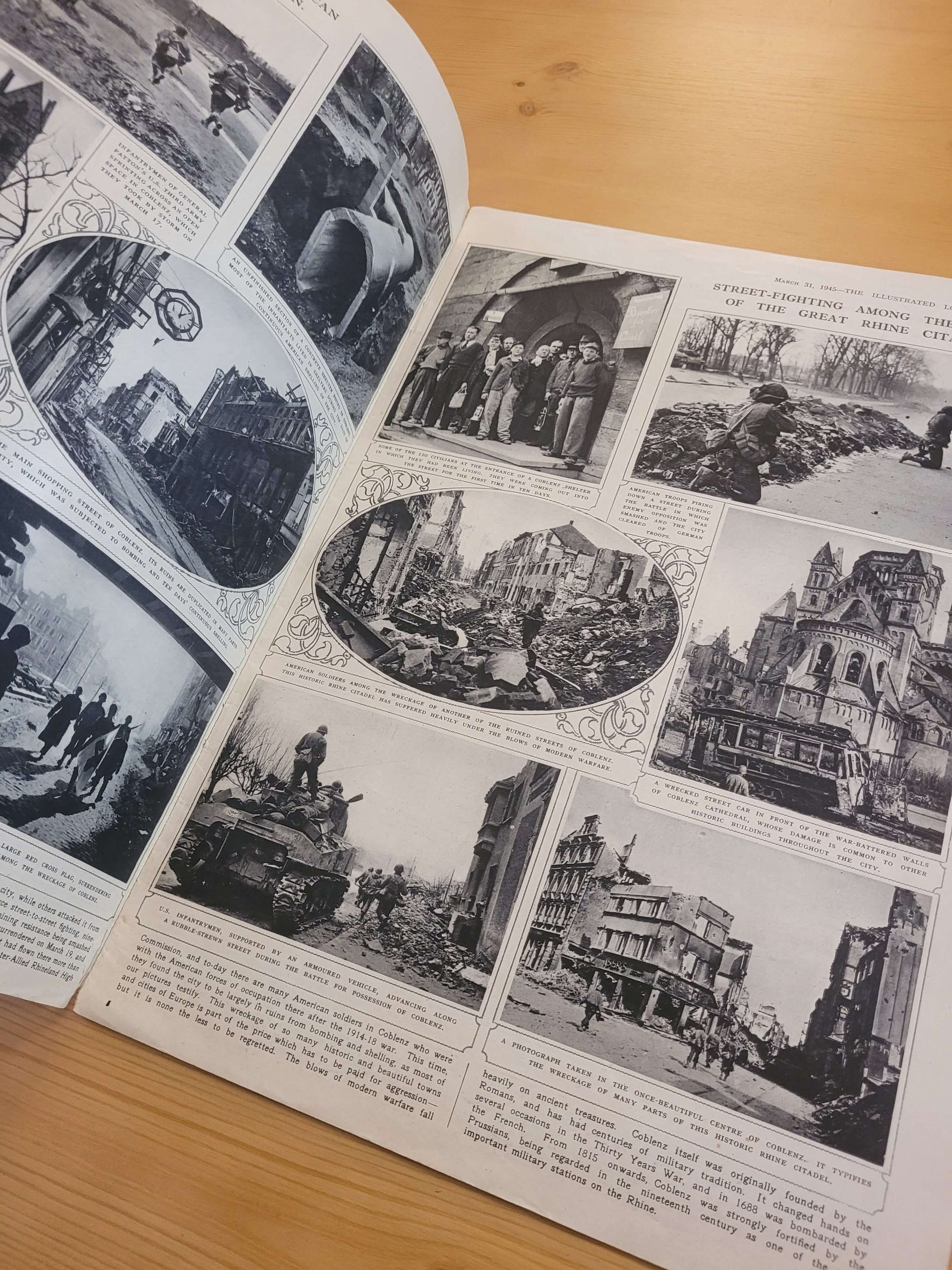 Fotografías y reportajes de guerra en la más alta calidad. No es posible acceder de mejor manera a los pormenores de la segunda guerra mundial que a través de una de las Illustrated London News, pues ésta nos ofrece la oportunidad de experimentar el conflicto en el momento en que sucedía, y bajo los ojos atemorizados de la población inglesa, sometida a bombardeos alemanes y en busca de animar a la ciudadanía a la resistencia y el contraataque.
