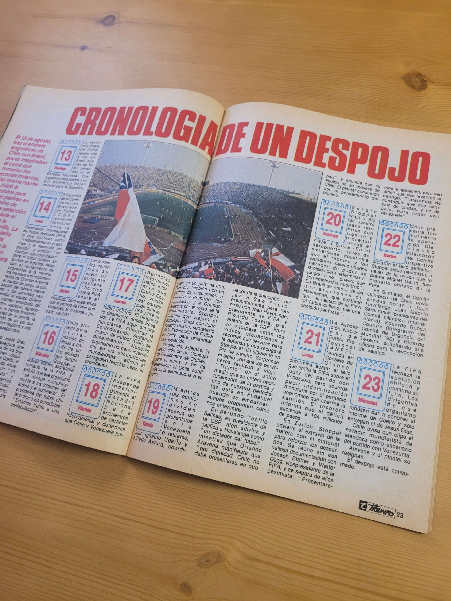 *Selección de 3 revistas TRIUNFO dedicadas a uno de los escándalos futboleros más relevantes de Chile y el mundo.